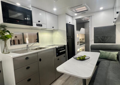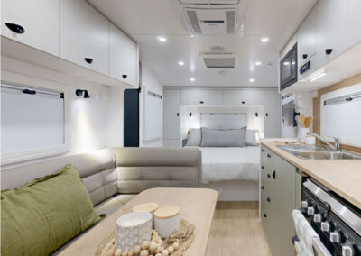 The Family Tourister makes life on the road easier for families. Thoughtful features like a fold-down picnic table, outdoor cooking setup, and ample internal storage ensure that everything is within reach. Spacious seating and dining areas provide a comfortable space for family bonding, while smart storage solutions help keep the caravan organised.