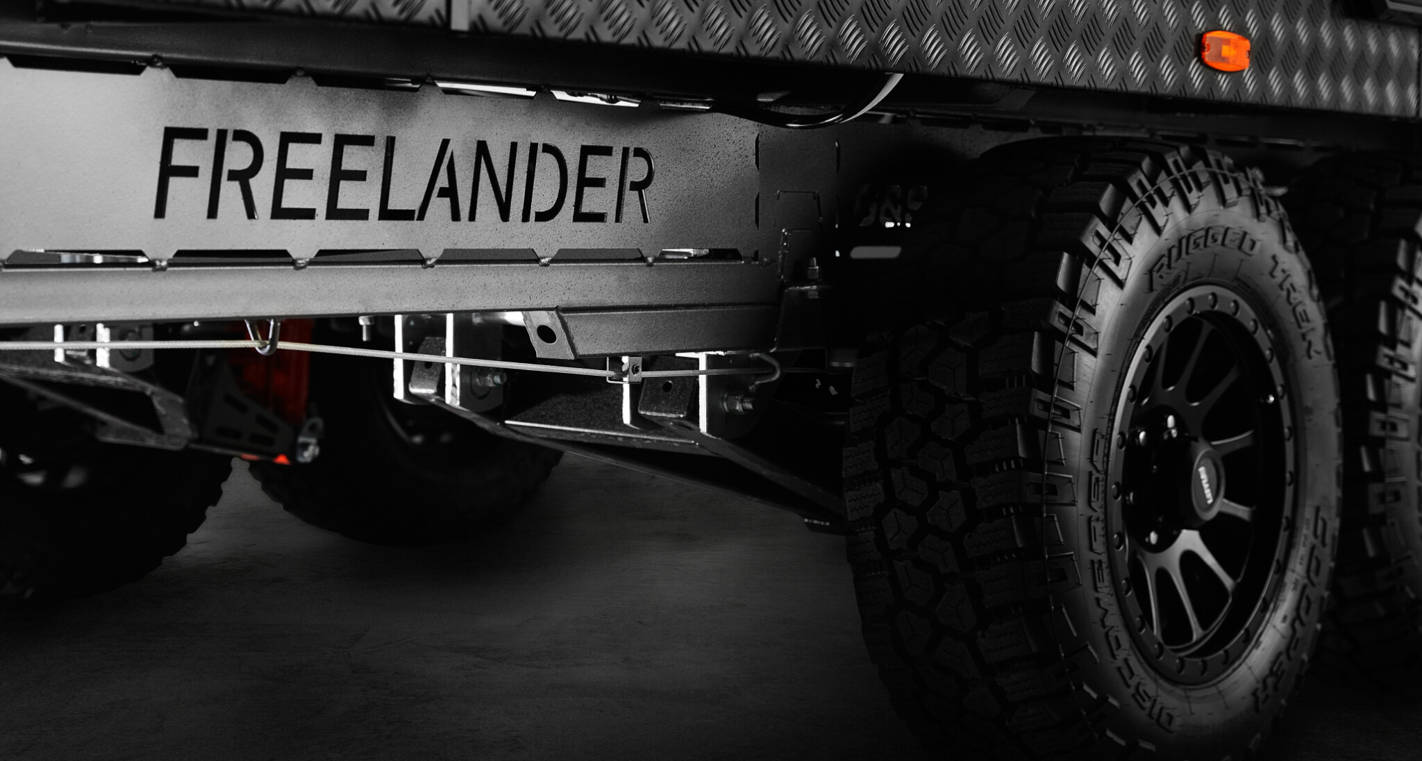 - Thick checkerplate body armour & complete underbody protection