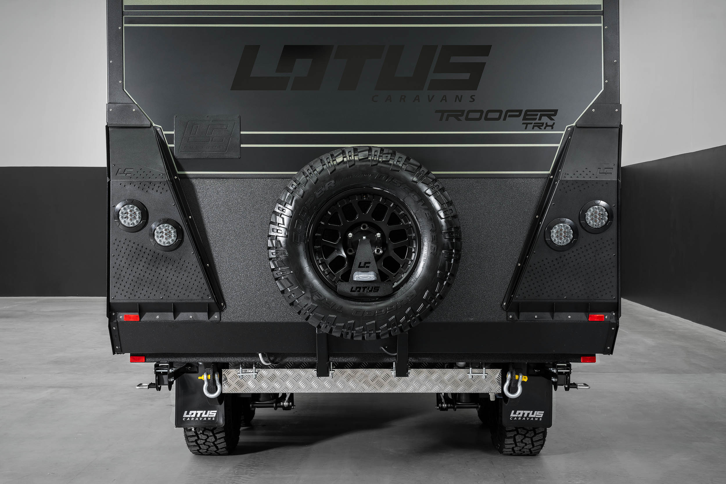 The Trooper TRX makes its presence known before it even hits the track. Its new LC Customs front and rear styling packs cut a bold, aerodynamic shape, while the all-aluminium frame, crafted with Lotus Caravans’ proprietary AL+ technology, forms an ultra-strong foundation built to resist flex and fatigue. German marine-grade composite panels provide exceptional insulation and strength, wrapped in your choice of smooth or checkerplate body panels with a range of colour options to suit every adventurer.