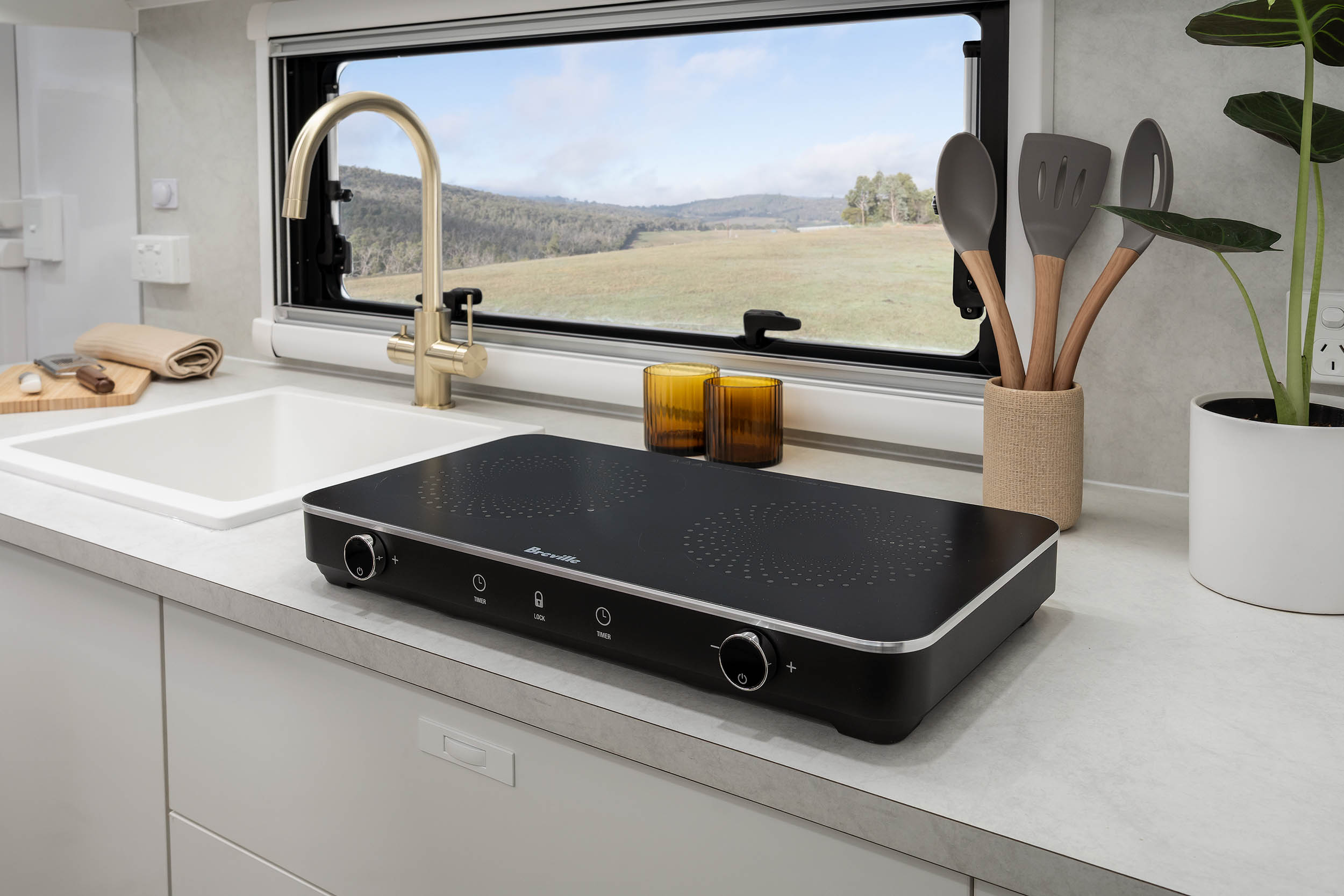 A new collection of contemporary colours and finishes is introduced across a range of flooring, bench top, hardware and splashback options. The highest-quality appliances, including convection oven, versatile, loose induction setup, and full-size fridge, plus Smart TVs, air conditioning, and a Fusion entertainment system provide unseen levels of luxury.